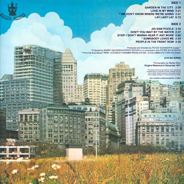 Sneakily marketed by Buddah as a new album after Melanie had left the label, "Garden in the City" was actually made up of recordings that hadn't made the grade for earlier albums plus a couple of songs from film soundtracks. That didn't augur well for the set, but in fact it isn't too bad. Melanie makes light work of the Jagger/Richards tune "Jigsaw Puzzle," tackles "Lay Lady Lay" with aplomb, and even turns in a respectable standard, "Somebody Loves Me." "People in the Front Row" finds her battling it out against a full-piece orchestra; it's a hammy piece, full of nonsense lyrics and staged laughter that is either a hoot or a travesty, depending on your tastes. It's no surprise that Melanie was apparently dismayed at the appearance of "Garden in the City"; any listener unaware of its true origins would have assumed she was regressing. This curiosity is now remembered more for its scratch 'n' sniff "smell Melanie's Magic Garden" cover than for its content. (Charles Donovan in AllMusic)