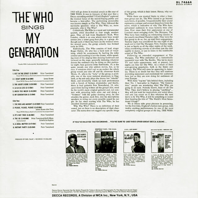 The Who’s debut LP, "My Generation", was released six months later. It’s kinda strange when you think about it,