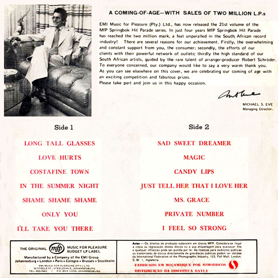 Este EP foi comprado na famosa Discoteca Bayly, em Lourenço Marques, conforme atesta o respectivo selo na contra-capa. "Famosa" porque era o local onde a juventude da época ia procurar avidamente os últimos sucessos importados directamente da África do Sul.